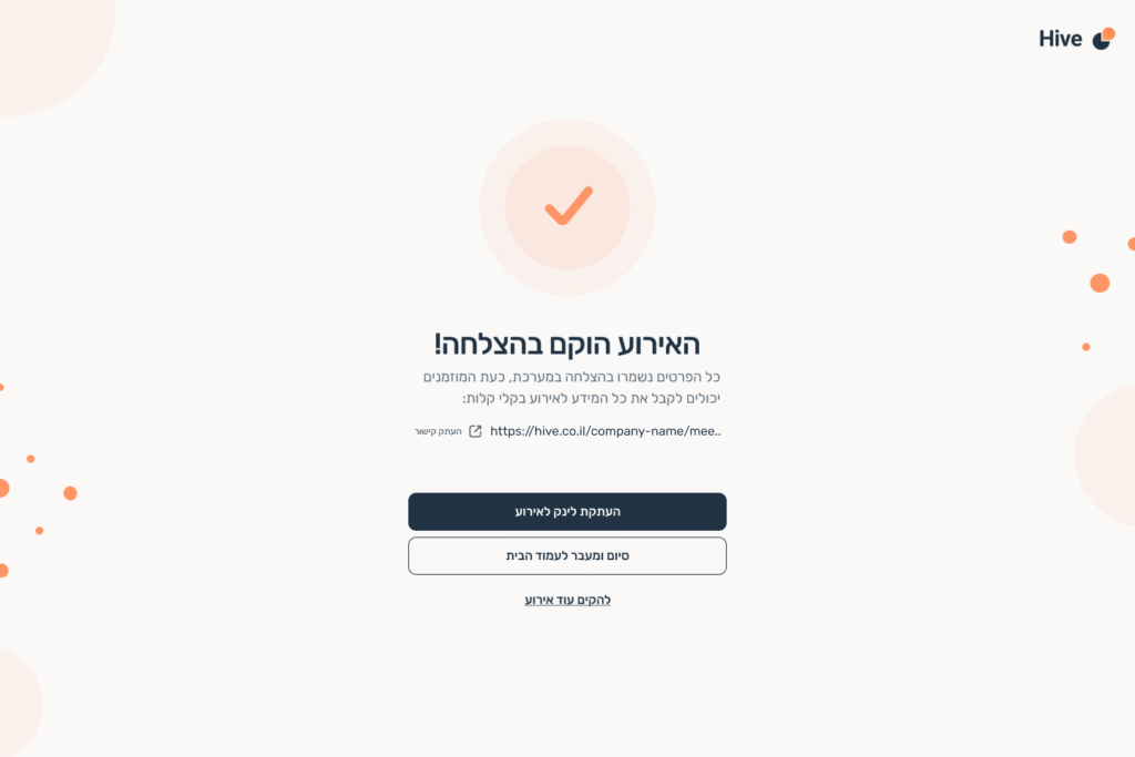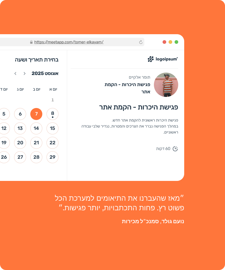 שתפו את קישור הפגישה שלכם בכל מקום שהלקוחות פוגשים אתכם: באתר, בחתימת המייל, בפרופיל החברתי או במודעות הקמפיין. כך הם יכולים להזמין אתכם בזמן שנוח להם ואתם מקבלים לידים חמים בלי להרים טלפון אחד.