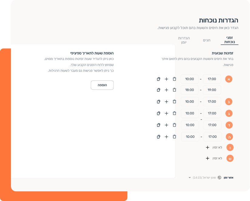 הגדירו את הזמינות שלכם בדיוק כמו שאתם רוצים.