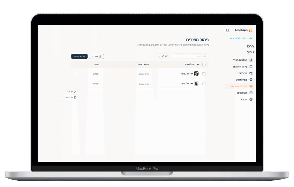 מהפרילנסר הבודד ועד לארגון רב-נציגים MeetApp מתאימה את עצמה לגודל, לצרכים ולתהליכים שלכם, ומאפשרת צמיחה חכמה ויציבה.
