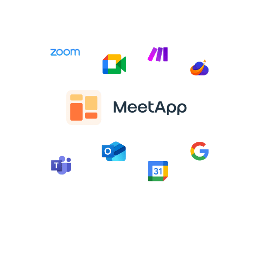 MeetApp מסתנכרנת אוטומטית עם כל היומנים שלך Google, Outlook, Zoom ו-Teams – ומוודאת שכל פגישה שתיקבע תופיע מיד בכל מקום.
